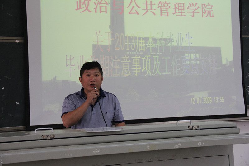 教务办黄远飞主任通过采用课件的形式,向同学们说明了2013届本科毕业生毕业前期注意事项及工作要点安排。