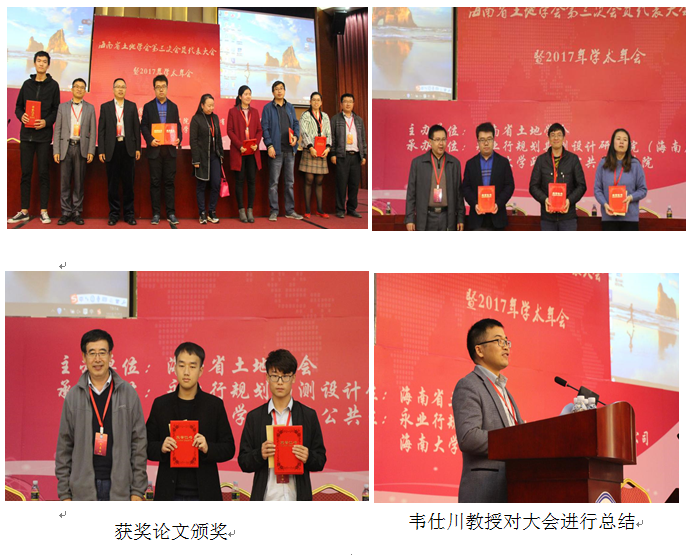 海南省土地学会理事宋晓丽副教授主持获奖论文颁奖仪式,海南省土地学会副秘书长韦仕川教授对本次大会进行了总结并宣布会议结束。大会在热烈的掌声中落下帷幕,取得了圆满的成功。