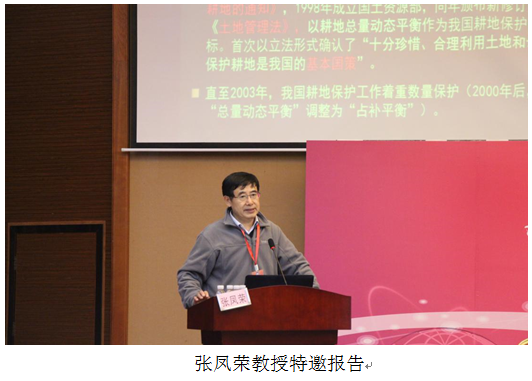 会议特邀报告由海南省土地学会谢跟踪副理事长和李国林副秘书长主持。首先由中国土地学会副理事长兼学术工作委员会主任张凤荣教授就耕地保护与生态文明建设进行大会特邀报告,他指出耕地保护是生态文明建设的基石,高标准农田建设是生态保护的重要手段,我们应把工作重心放在提高耕地质量上,适时调整耕地保护目标。旅游地理学家杨冠雄研究员提出了海南省生态环境方面存在的问题,并从四个方面就如何加强海南省生态环境保护阐述了自己的见解。