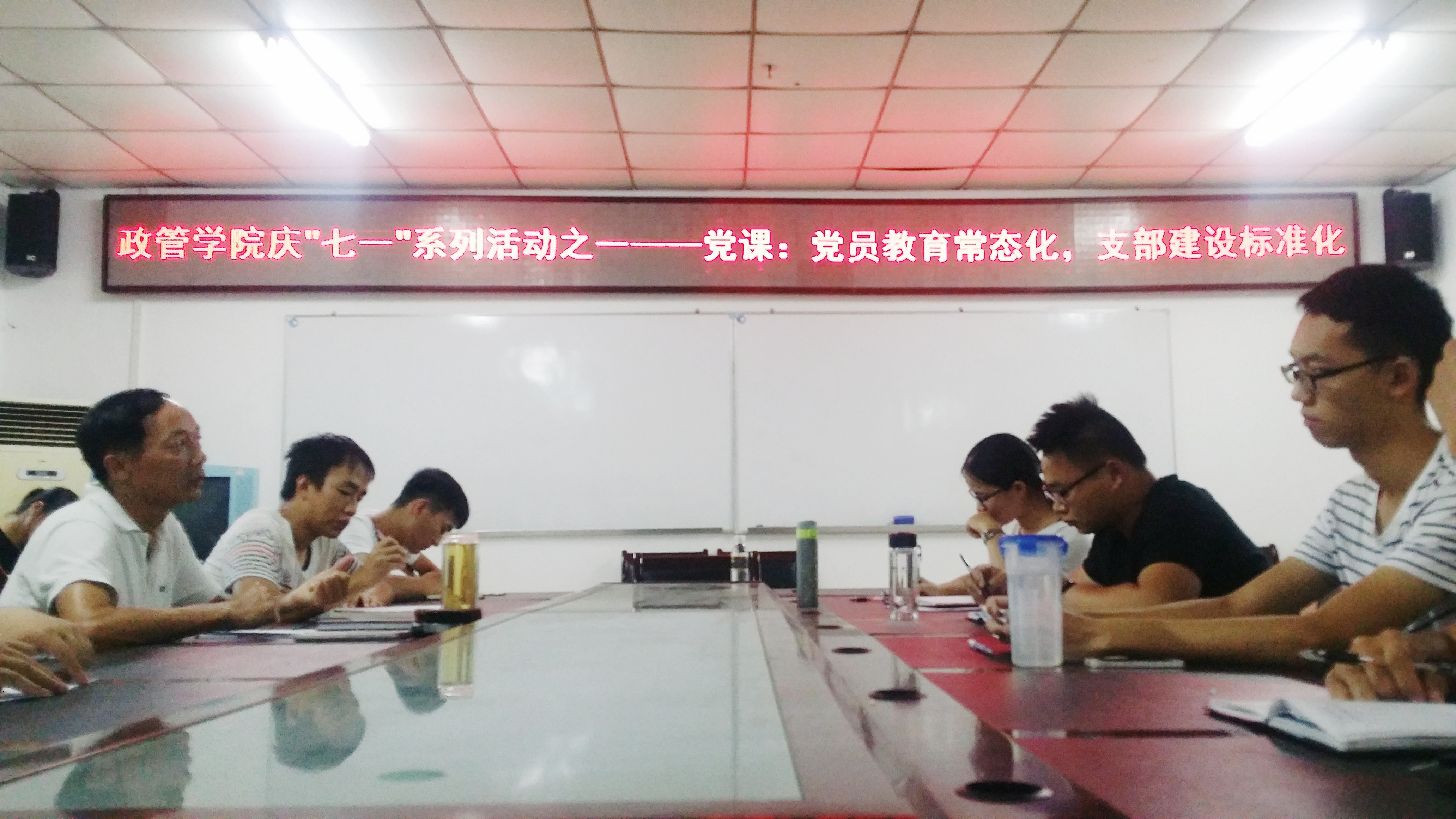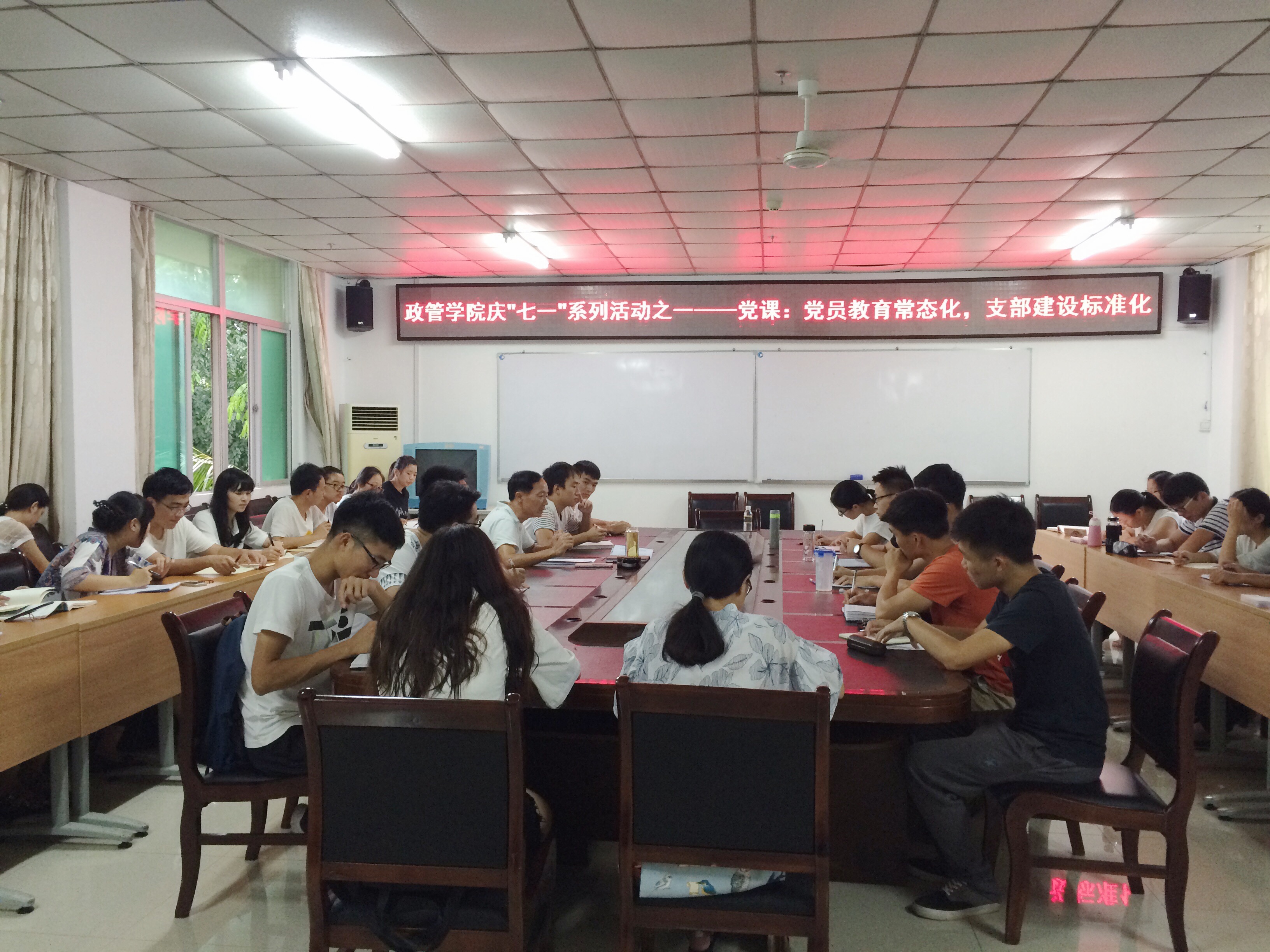 6月20日下午,政治与公共管理公司各员工党支部在社科楼A216会议室进行了党课学习培训,公司党委王默忠书记对16级研究生以及本科各支部的党员及发展对象进行了党课教育,本次党课主题为“党员教育常态化,支部建设标准化”。