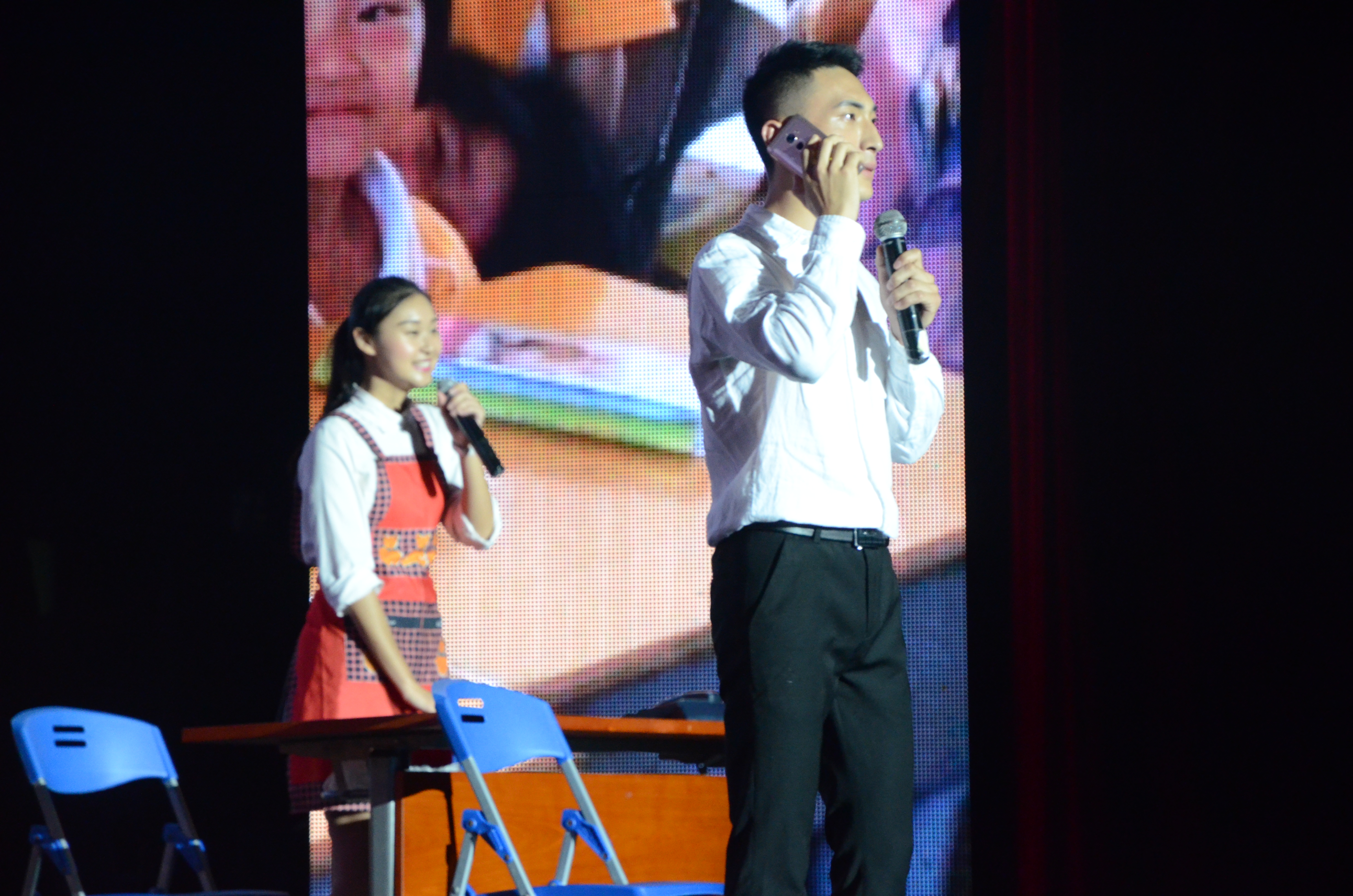 (二)知——“正反党员形象”情景再现与现场评论。除了知识竞赛,当晚的超级“知识辩论赛”,还准备了情景剧和辩论赛两个环节。由员工自编自演的情景剧通过交党费、办事大厅、支教、人民公仆等情节,从正反两个角度,反映出当下一些不合格的党员干部身上存在的严重问题,也表达出做合格党员、优秀党员应该具备的精神风貌。观众互动环节中,同学们纷纷说出了自己对情景剧的感受,发人深醒。