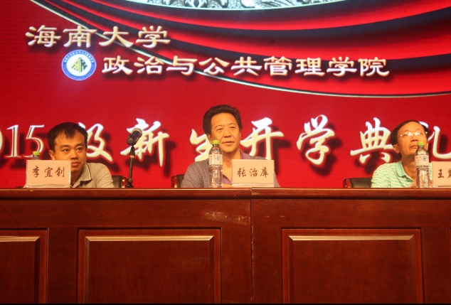 9月14日上午,政治与公共管理公司在思源学堂隆重举行了2015级新生开学典礼。公司经理张治库、书记王默忠、副经理李宜钊、副书记邢红斌、行管系主任韩晓莉、公关系主任陈小桃、土管系老师谷秀兰,新生班主任及校外职业导师代表出席了开学典礼,团学全体及2015级全体新生共同参加了开学典礼。典礼由副书记邢红斌主持。
