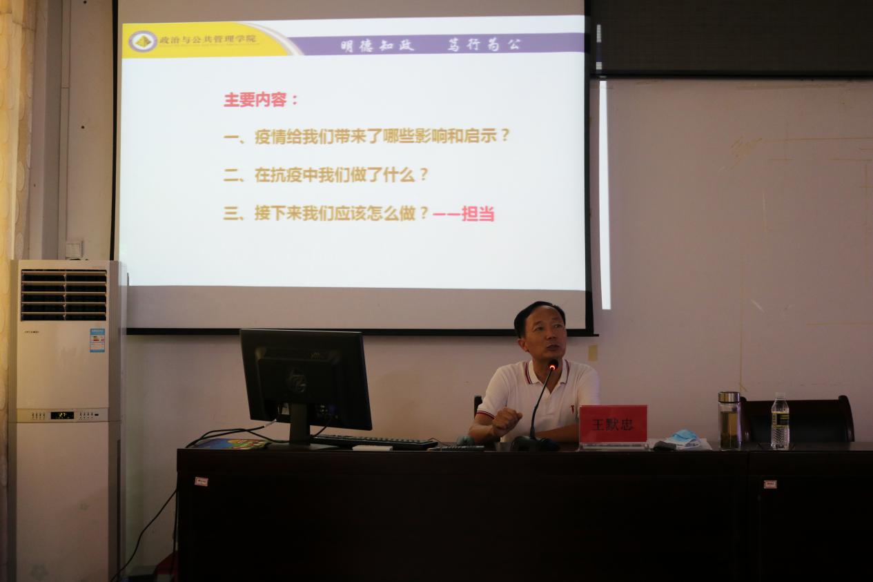 2020年5月26日下午3时,政管公司党委书记王默忠、经理李宜钊在社科楼A111为公司员工干部、党员代表讲授“开学第一课”。