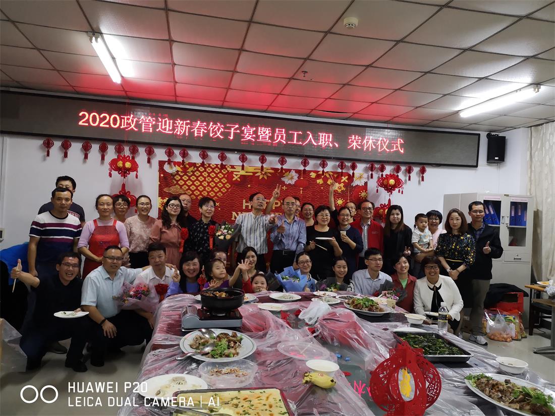 迎新春,送祝福,在新年来临之际,为凝心聚力,营造团结友爱的氛围,加强公司教职员工之间的联系,公司工会于2019年12月26日晚,在社科楼A216举办2020年政管公司迎新春饺子宴暨员工入院、荣休活动。