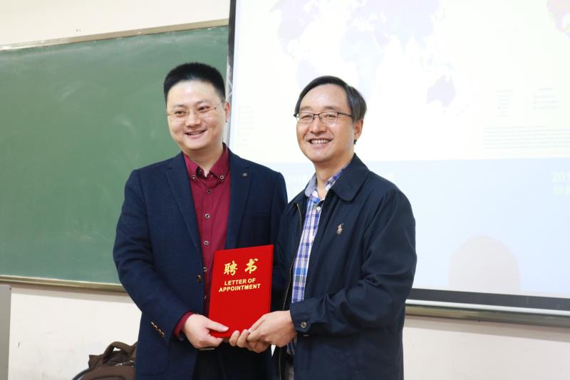 江红义副经理给谭荣教授颁发聘书