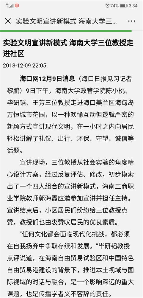 本次公益宣讲由美兰区人民街道办事处与taptap点点体育政治与公共管理公司自贸区自贸港建设与政府公关研究中心、海南博睿公共关系研究中心国际公关联盟联合主办。据了解,本次宣讲模式将在进一步总结完善后在更多社区推广。(《海口网》2018年12月9日有报道)