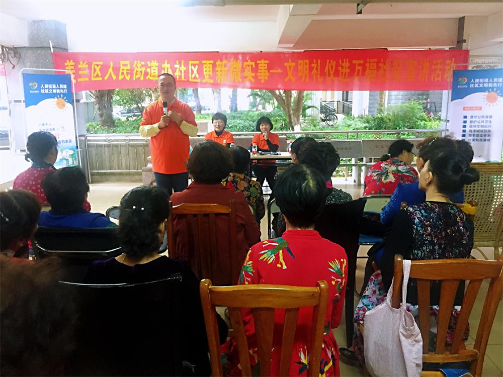 12月9日下午,taptap点点体育政治与公共管理公司陈小桃、毕研韬、王芳三位教授走进海甸岛万恒城市花园,以一种愉快互动但逻辑严密的新颖方式宣讲社区文明,以向世界问好为主题,与社区市民分享了文明要义、友善诚信、平安出行、节约环保、守望相助、传承家风等内容,取得了非常好的社会效果。海南工商职业公司郭海霞老师应邀参加宣讲并担任主持。