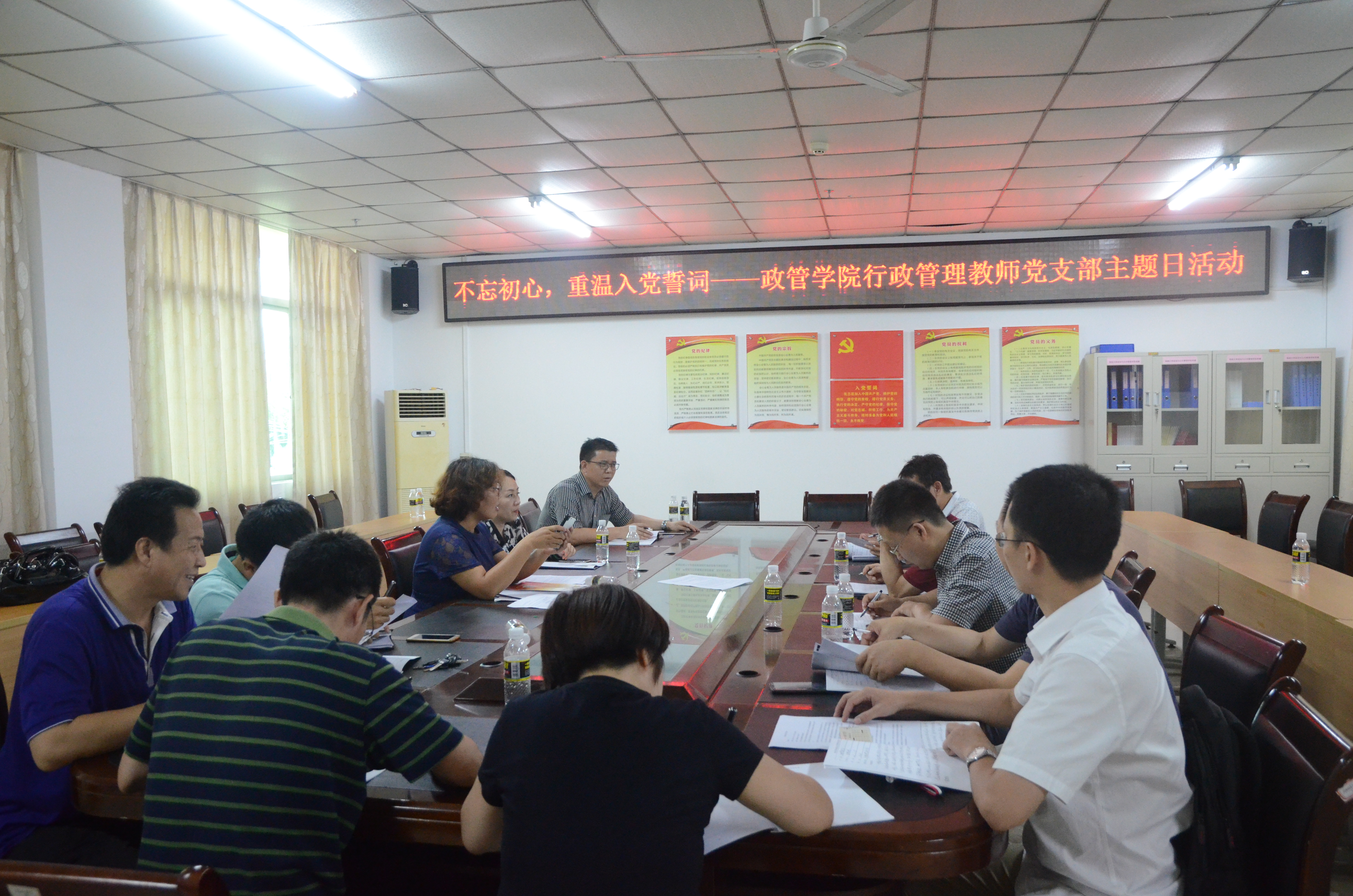 为庆祝中国共产党建党97周年。6月26日下午,政管公司行政管理系教师党支部在社科楼A216会议室开展了“不忘初心,重温入党誓词”为主题的党日活动,全体党员参加了活动。与会党员通过重温入党誓词,再一次深刻体会到“不忘初心、牢记使命”的重要性,作为一名共产党员,就必须时刻修正自己的入党目的和动机,不断坚定为社会主义和共产主义事业奋斗的信念,不断增强为人民服务的决心,这样才能与时俱进,无愧以心。