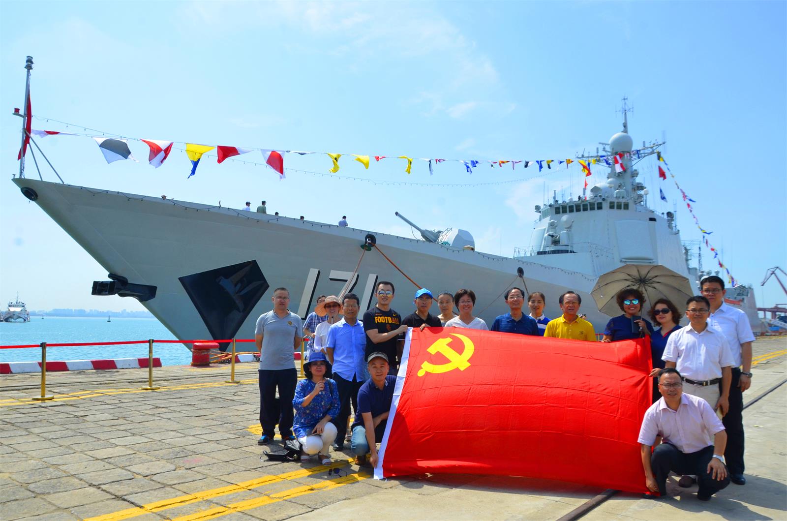 5月17日下午,在公司党委王默忠书记的带领下,政管公司党员教师一行27人前往海口秀英港参观守护祖国十三载首次“回家”的中国海军171海口号驱逐舰。在仔细浏览了中国海军发展与海口舰的图片资料之后,大家满怀激动地登上了雄姿威武的海口舰。跟随海军战士的引导,大家在舰上参观了一周,认真地倾听战士对海口舰作战能力的介绍,在整个参观过程中,大家纷纷为中国海军挺进深蓝、走向世界点赞,为我国拥有强大的军事实力感到骄傲和自豪。